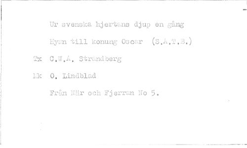 //// Ur //// ; Hy; //// i //// ! c.t //// i //// j Lk 0. //// j Fr; //// i //// svenska hjertans djup en gång *-n till konmr)g Oscar (S.A.T.B.) ?. A, St rand berg Lindblad //// ån När och Fjerran No 5.