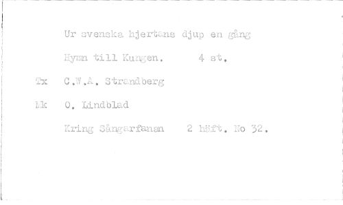 //// Ur svenska hjertans djup en gång Eyon till Kungen. 4 st, //// 0.W.A, Strandberg //// 0. Lindblad //// Kring S&ngarfanan 2 häft. No 32,