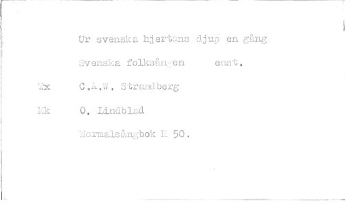 //// Ur svenska hjertans djup en g&ng Svenska folksången enst. //// L'x C.A.W. Strandberg 1,1c 0. Lindblad //// Normals&ngbok E 50.