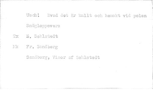 //// Usch'. Hvad det är kallt och hemskt vid polen Snögloppsvers //// E. Sehlstedt Fr. Sandberg //// Sandberg, Visor af Sehlstedt