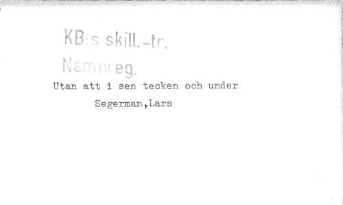 //// KB:s skitt.-tr. eg //// Utan att i sen tecken och under Segerman,Lars