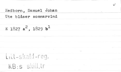 //// Hedbom, Samuel Johan Ute blåser sommarvind //// E 1827 a^, 1829 //// L^t-skaLI-reg, HB:S skid.tr //// t //// /