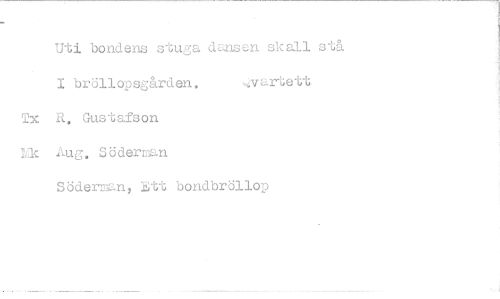 //// Uti bondens stuga dansen skall stå //// I bröllopsgården. ^vartett Tx R, Gustafson Ht Aug. Söderr^an //// Sodensan, Utt bondbröllop