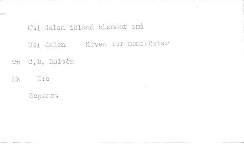 //// Uti dalen ibland blommor små Uti dalen äfven för mansröster C.B. Hultén D:o Separat