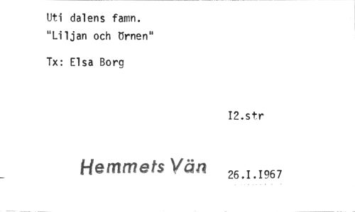 //// Uti dalens famn. //// "Liljan och Brnen" //// Tx: Elsa Borg //// I2.str //// 26.1.1957
