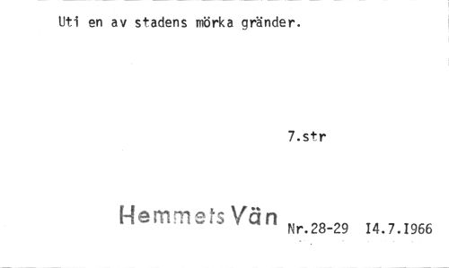 //// Uti en av stadens mörka gränder. //// 7.str //// HemmetVan //// Nr.28-29 14.7.1966