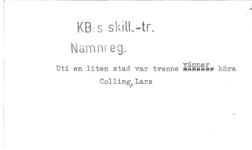 //// J //// KB:s skiH.-tr. Namnreg. //// Uti en liten stad var tvenne maiae^ej? kära Colling^ Lars