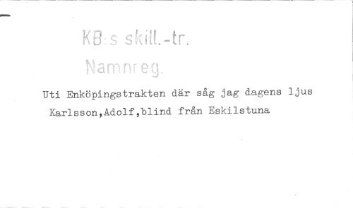 //// K8:S sfti'!!.-tr. //// Nanmr eg. //// Uti Enköpingstrakten där såg jag dagens ljus Karlsson,Adolf,blind från Eskilstuna