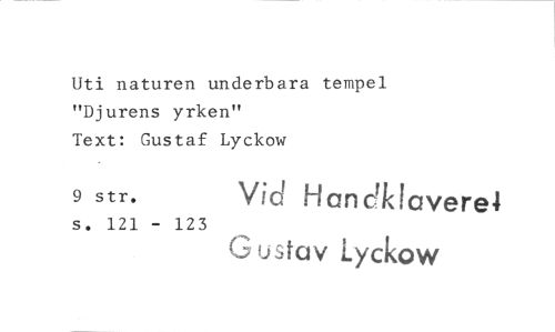 //// Uti naturen underbara tempel "Djurens yrken" //// Text: Gustaf Lyckow //// 9 str. Vid Hanc'k!avere4 //// s. 121 - 123 //// Gustav Lyckow