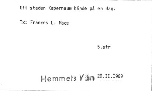 //// Uti staden Kapemaum hände på en dag. Tx: Frances L. Mace //// 5.str //// Hemmet /an 20.11.1969