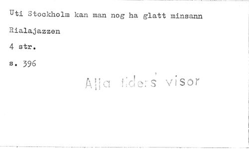 //// Uti Stockholm kan man nog ha glatt minsann Rialajazzen 4 str. s. 396 //// Ajjg t k! o: s visor