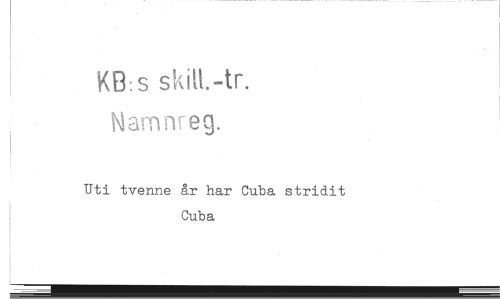 //// KB.s skitt.-tr. //// Mamnreg. //// Uti tvenne år har Cuba stridit Cuba
