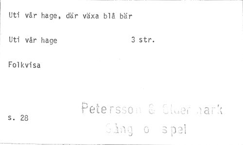 //// Uti vår hage, där växa blå bär Uti vår hage 3 //// Folkvisa //// s. 28 //// Pete rsso