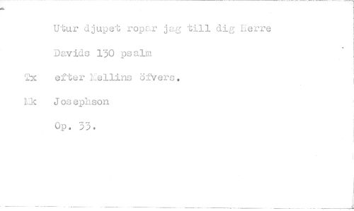 //// Utur djupet ropar jag till dig Lerre Davids 130 psalm Tx efter Lellins öfvers, //// M: J os ephson Op. 33.
