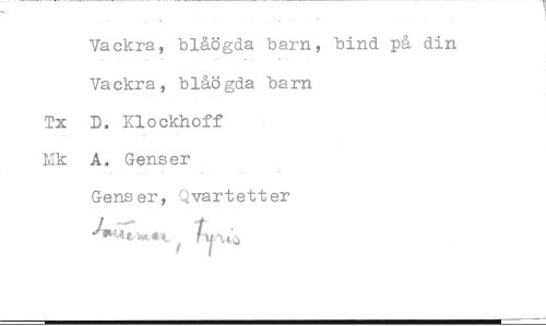 //// Vackra, blåögda barn, bind på din Vackra, blåögda barn Tx D. Klockhoff Mk A. Genser //// Gens er, Qvartetter