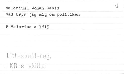 //// Valerius, Johan David //// Vad bryr jag mig om politiken //// F Valerius a 1813 //// Litt-skai j-reg, KB:S skaLtr