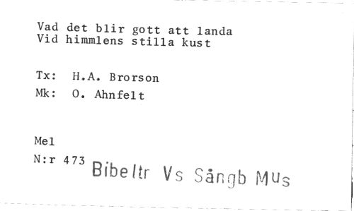 //// Vad det blir gott att landa Vid himmlens stilla kust //// Tx: H.A. Brorson Mk: 0. Ahnfelt //// Mel //// N:r 473 r-t ] . ,, //// Btbe^r Vs Sångb