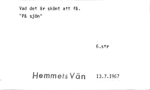 //// Vad det är skönt att få. "På sjön" //// 6.str //// Hemmefg Vän 13.7.1967