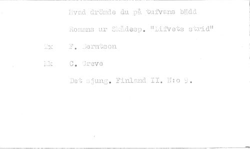 //// B. v ad drömde du på tufvans bädd Romans ur Skådesp. "Lifvets strid" F. Jerntson //// C. Jreve //// Det ujung. Finland 11. II: o .