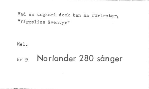 //// Vad en ungkarl dock kan ha förtreter, "Viggelins äventyr" //// Mel. Nr 9 //// Noriander 280 sånger