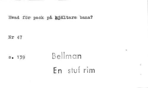 //// Hwad för paclc Nr 47 s. 139 //// ^ jämtars; bana? //// Be!!man En stur rim