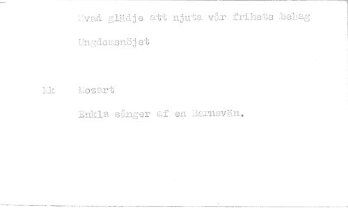 //// hvad glädje att njuta vår frihets behag //// Ungdomsnöj et //// hk Lozart //// Enkla sånger af en Barnavän.