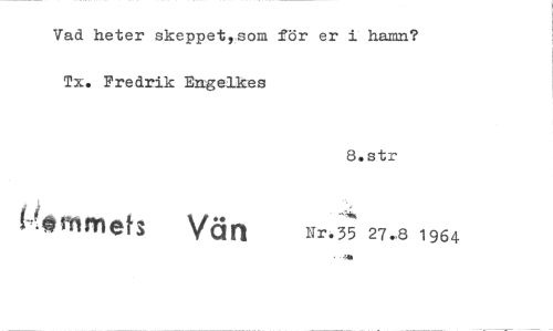 //// Vad heter skeppet,som för er i hamn? //// Tx. Fredrik Engelkes //// 8.str //// atmmets Van Nr.35 27.-81964