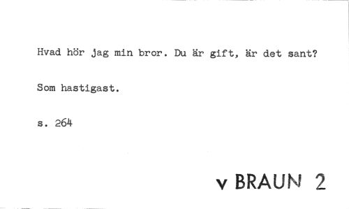 //// Hvad hör jag min bror. Du är gift, är det sant? Som hastigast, s. 264 //// v BRAUN 2