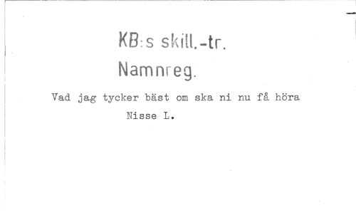 //// KB:s skiM.-tr. Namnreg. //// Vad jag tycker bäst om ska ni nu Nisse L. //// å höra