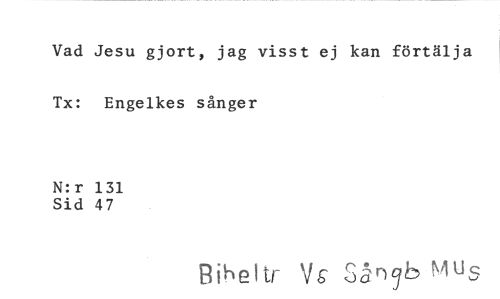 //// Vad Jesu gjort, jag visst ej kan förtälja Tx: Engelkes sånger //// N:r 131 Sid 47