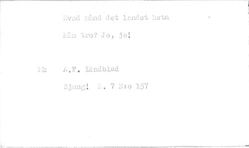 //// Ilvad cånd det landet heta //// Ihån tro? Jo, jo //// I.k A.F. Lindblad Sjungi I. 7 N: //// t //// o 157