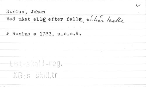 //// Runius, Johan ___ //// Vad måst al Ig efter fall^. 1^/^, //// F Runius a 1722, u.o.o.å.