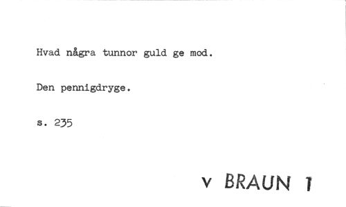 //// Hvad några tunnor guld ge mod. Den pennigdryge. s. 235 //// v BRAUN T