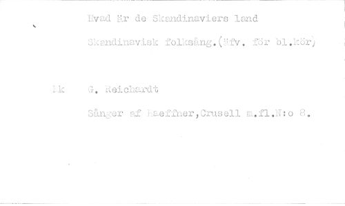 //// Hvad är de Skandinaviers land //// Skandinavisk folksång, (--'fv. för bl .kör; G. Keichardt //// Sånger !..aeffner,Crusell m.fl.N:o 8.