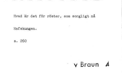 //// Hvad är det för röster, som sorgligt nå Hafskungen, s. 260 //// v Braun