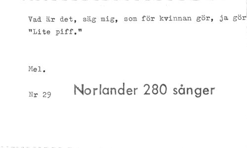//// Vad är det, säg mig, som för kvinnan gör, ja gör "Lite piff." //// Mel. //// Nr 29 //// Nor!ander 280 sånger