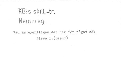 //// KB s sMt.-tr. //// Namnreg. //// Vad. är egentligen det här för något söl Nisse L.(pseud)