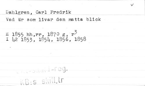 //// Dahlgren, Carl Fredrik //// Vad är som livar den matta blick //// 1855 hh,rr, I87O g, r^ //// !;2 1853, 1854, 1856, 1858