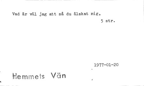 //// Vad år väl jag att så du älskat mig, //// 5str. //// 1977-01-20 //// Hemmets Vän //// t