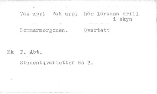 //// Vak uppi Vak upp! hör lärkans drill //// i skyn //// Sommarmorgonen. Qvartett //// F. Abt. //// Stu.dentq.vart ett er No 2.