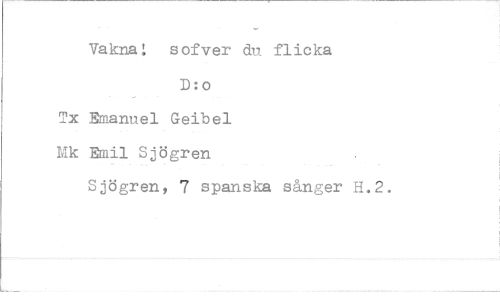 //// Vakna 1 sofver du flicka D: o //// Tx Emanuel Geibel Mk Emil Sjögren //// Sjögren, 7 spanska sånger H.2.