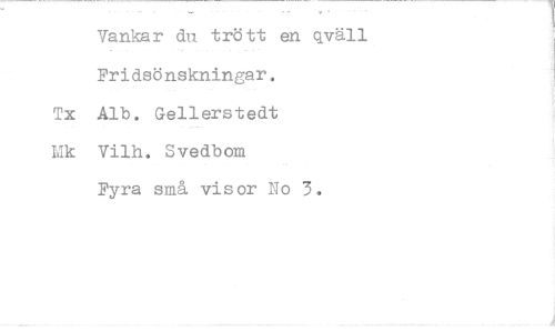 //// Vanks r du trött en qväll Fridsönskningar, //// Alb. Gellerstedt Vilh. Svedbom Fyra små visor No 3.