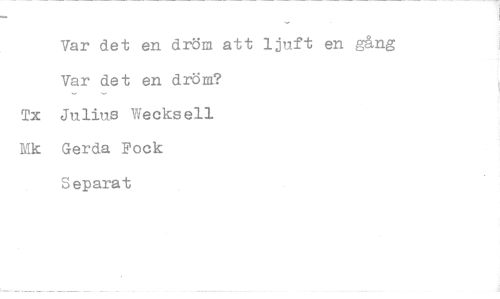 //// Var det en dröm att ljuft en gång Var det en dröm? //// Tx Julius Wecksell Hk Gerda Fock Separat