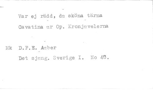//// Var ej rädd, du sköna tärna Cavatina ur Op. Kronjuvelerna //// D.F.E. Auber //// Det sjung. Sverige I. No 48.