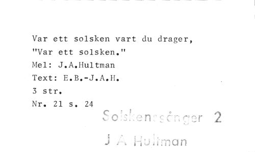 //// Var ett solsken vart du drager, //// "Var ett solsken." //// Mel: J.A.Hultman Text: E.B.-J.A.H. //// 3 str. //// Nr. 21 s. 24 //// C " ? o ^ //// co.-:5.;en-:fcn^cr 2 //// J <-'-t iiu.iman