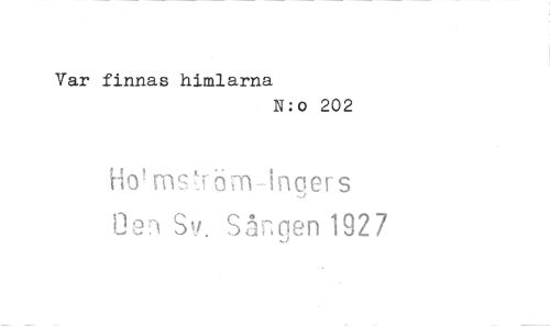 //// Var finnas himlarna //// N:o 202 //// Ho'ms-rämingers Qei S^, Sången 1927