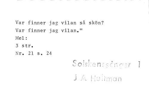 //// Var finner jag vilan så skön? //// Var finner jag vilan." //// Mel: //// 3 str. //// Nr. 21 s. 24 //// ^ ' .Ti ri ' ^ y 1