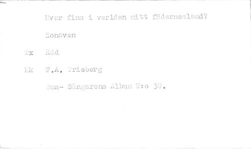 //// Evar fins i verIden nitt fädernesland? //// Zonaven //// Rdd //// ?.A, jJ'rieoerg //// Bas- Sångareas Album U:o 38.