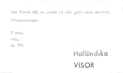 //// 'Jar finns väl en plats på vår jord vars skönhet SSndrunsvisan //// 2 str. mel, s. 196 //// ViSOR