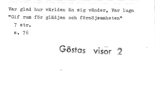 //// Var glad hur världen än sig vänder, Var "Gif rum för glädjen och förnöjsamheten" 7 str. s. 76 //// Göstas visor 2